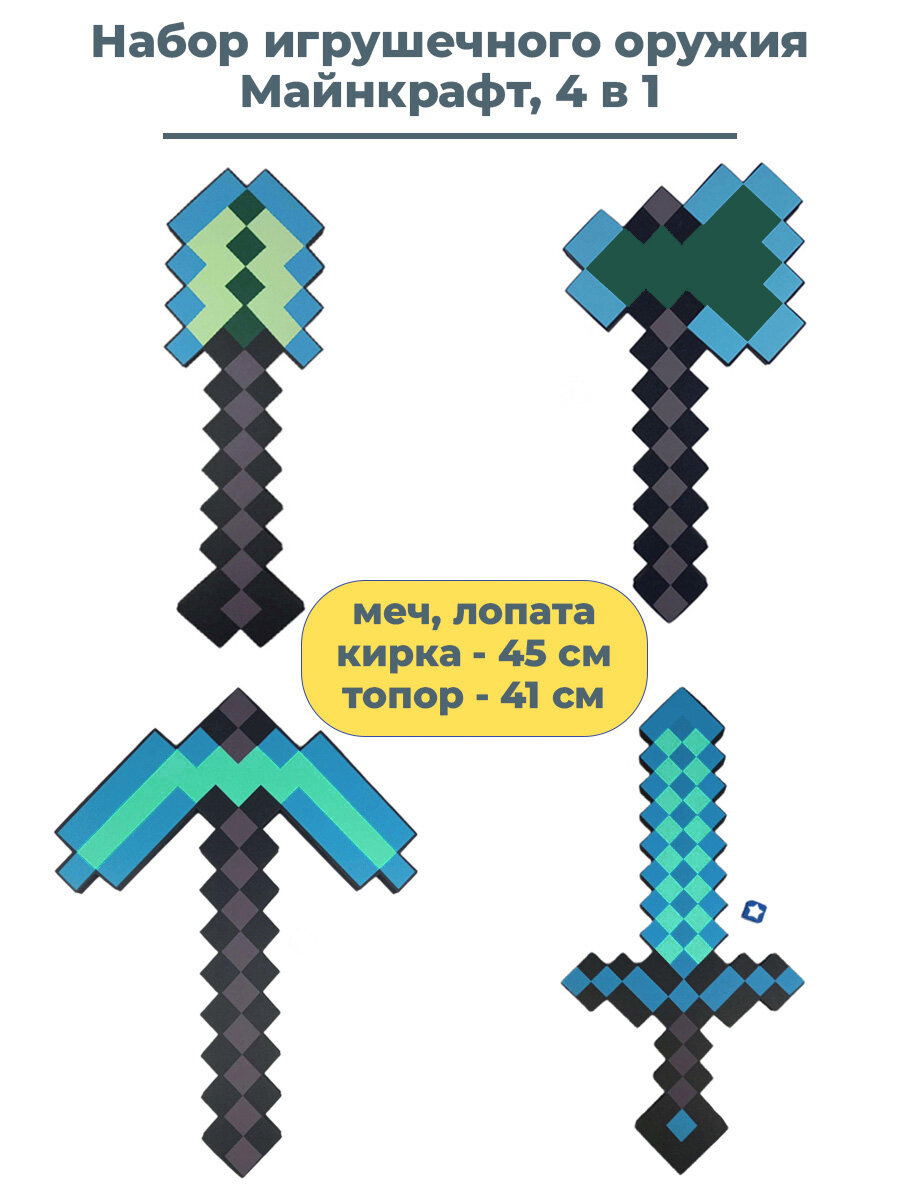 10 цен на Игрушечное оружие Майнкрафт Minecraft алмазное 4 в 1 меч кирка лопата топор