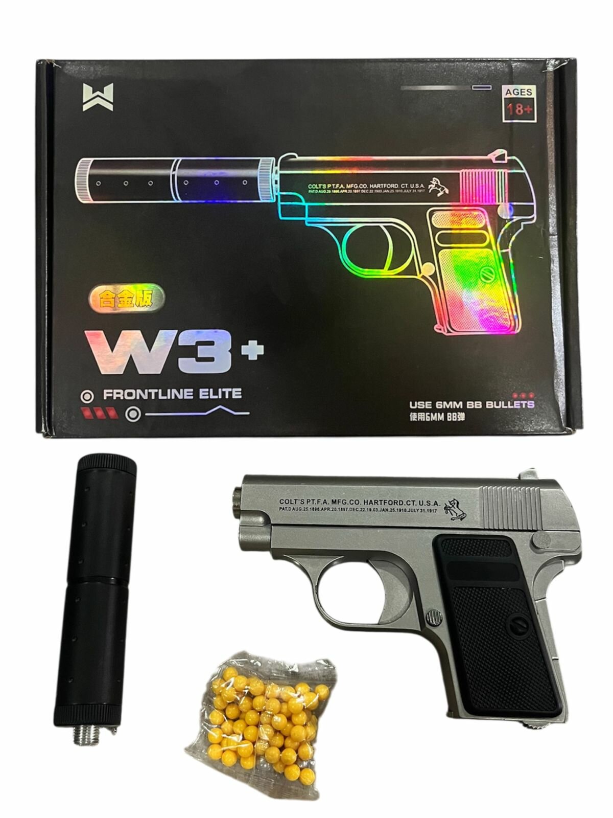 Пистолет игрушечный с глушителем - Colt mini, пневматический с пульками 6мм (пульки в комплекте) информация: