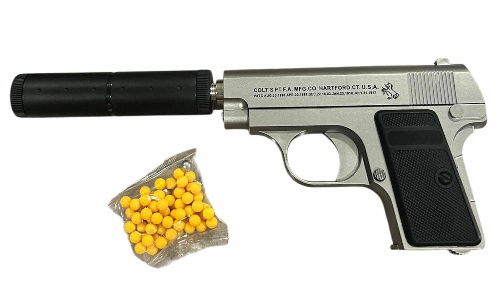 Пистолет игрушечный с глушителем - Colt mini, пневматический с пульками 6мм (пульки в комплекте)