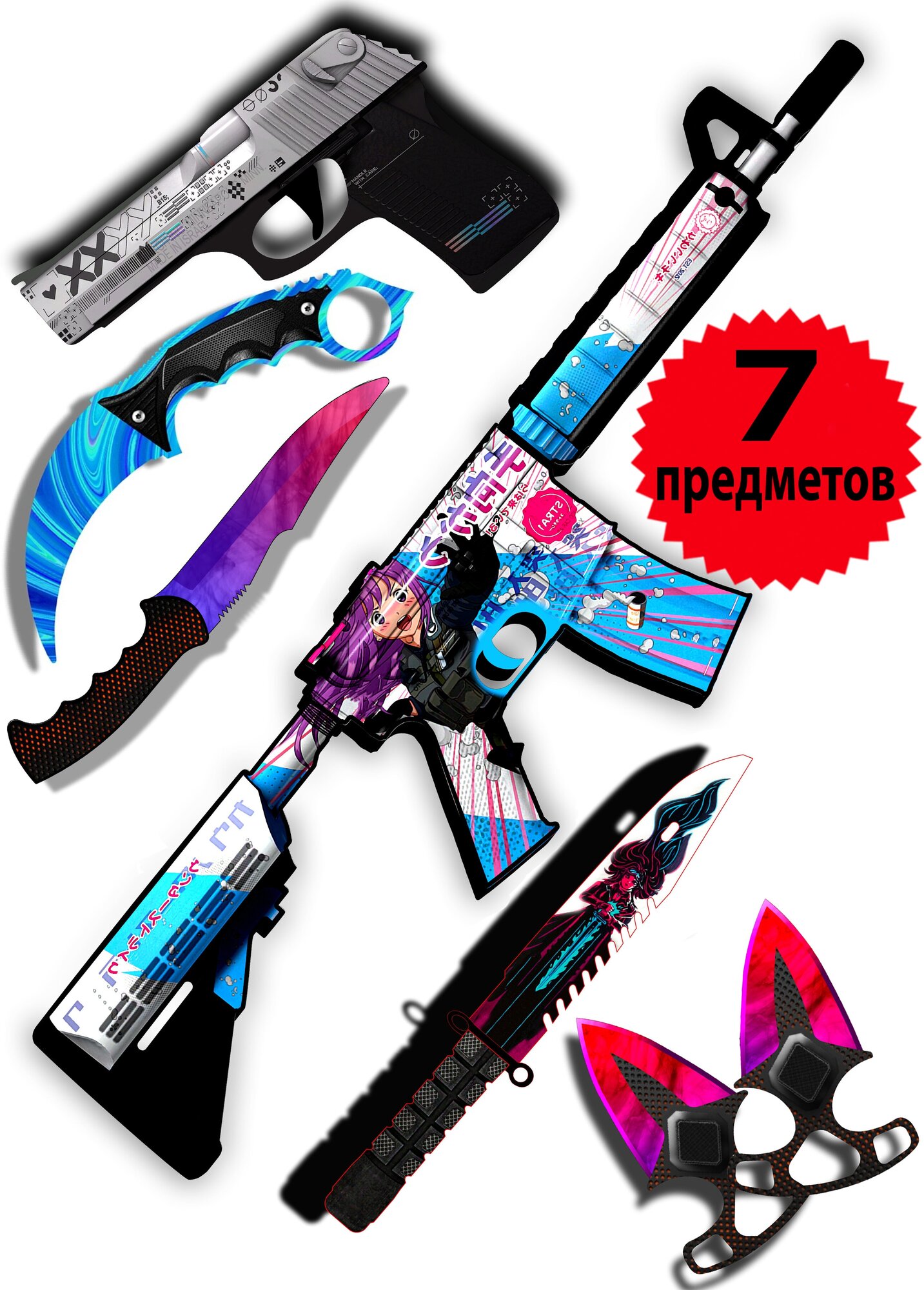 Набор деревянный, автомат кс го, штык нож, нож керамбит, пистолет резинкострел, cs go, игрушка, бабочка кс го