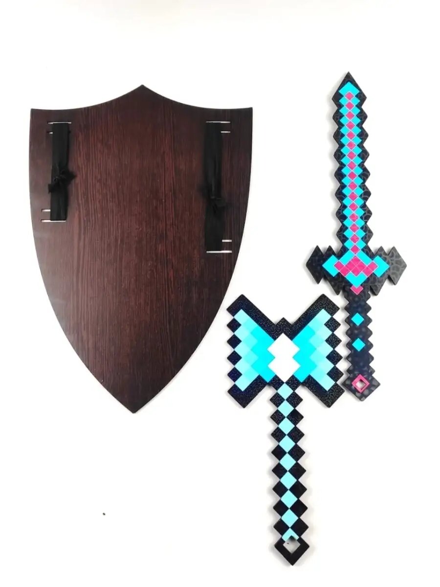 Набор пиксельного оружия Щит, Меч, Топор из игры Майн крафт информация: