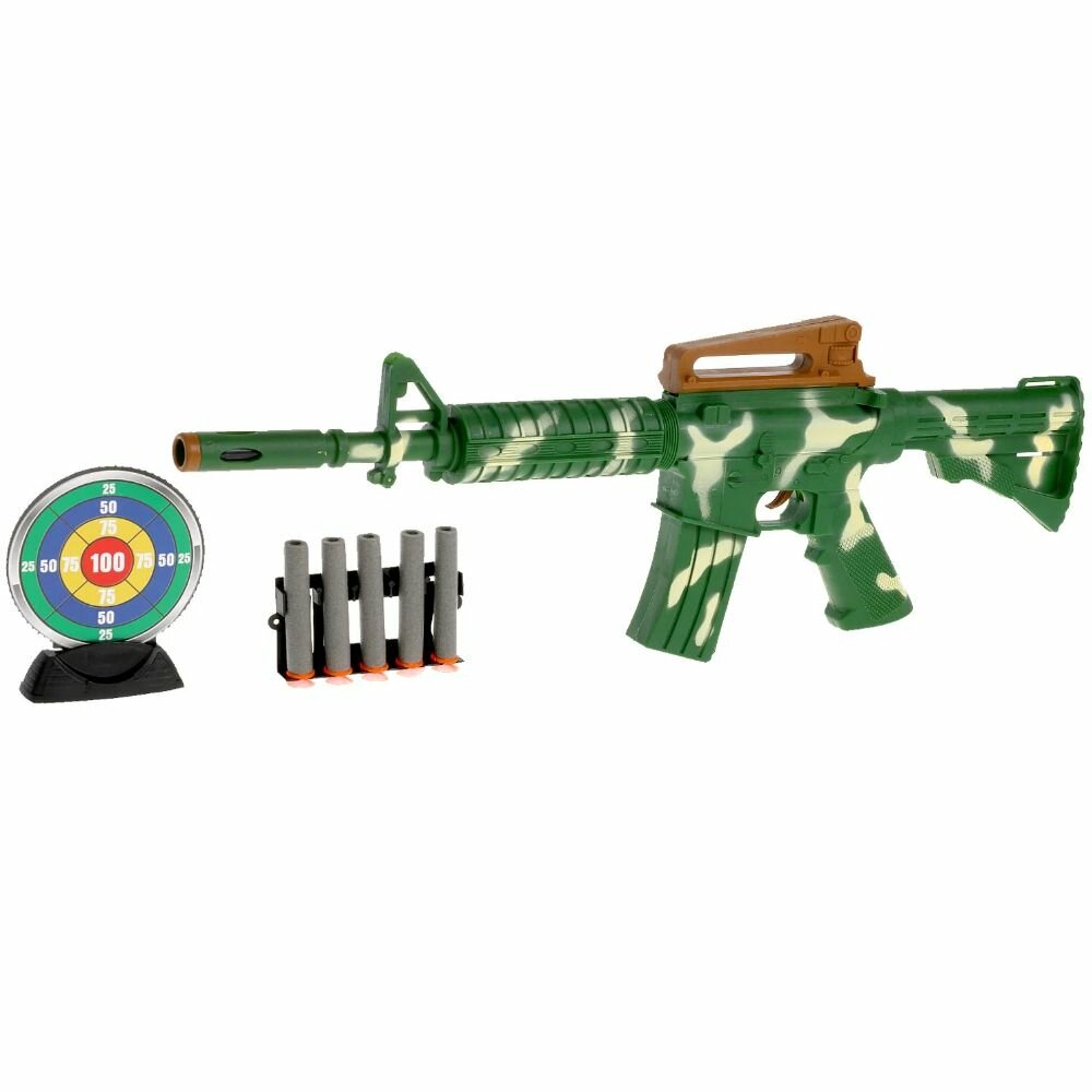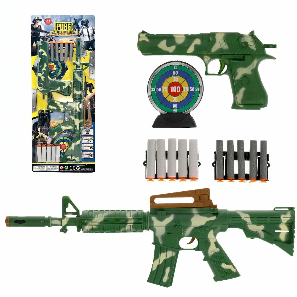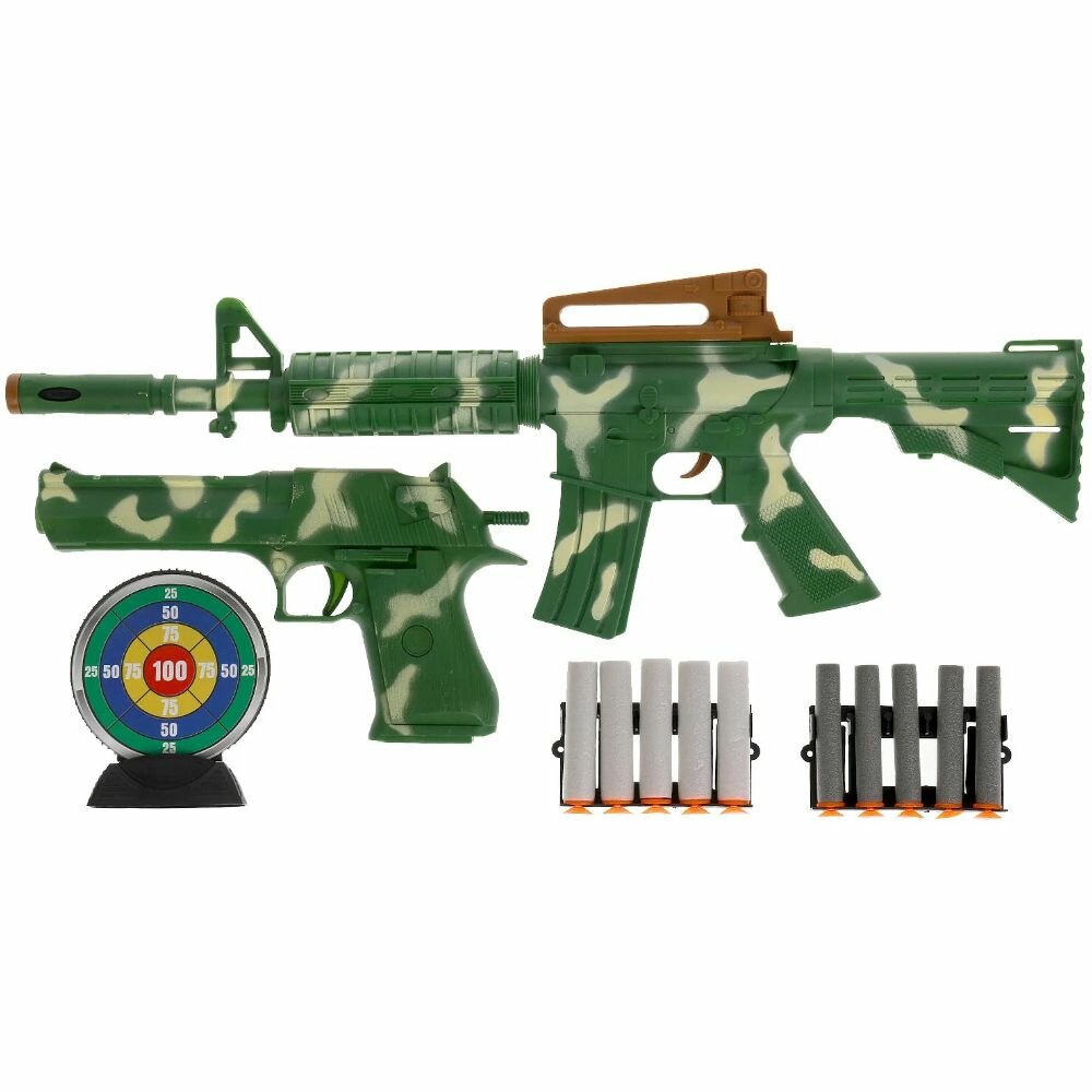 Игрушечное оружие автомат 42 см и пистолет 20 см с 10 мягкими пулями с присосками и мишенью информация: