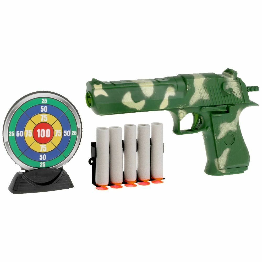 10 цен на Игрушечное оружие автомат 42 см и пистолет 20 см с 10 мягкими пулями с присосками и мишенью