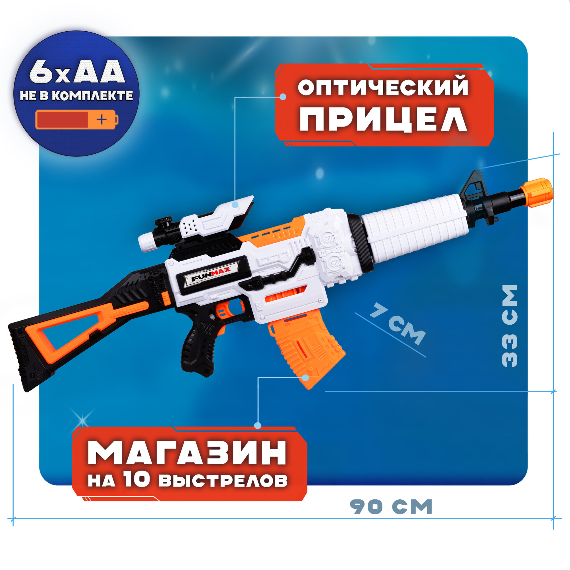 1toy Funmax "A81" бластер электромеханический, обойма на 12 выстрелов, в комплекте 48 EVA снарядов информация: