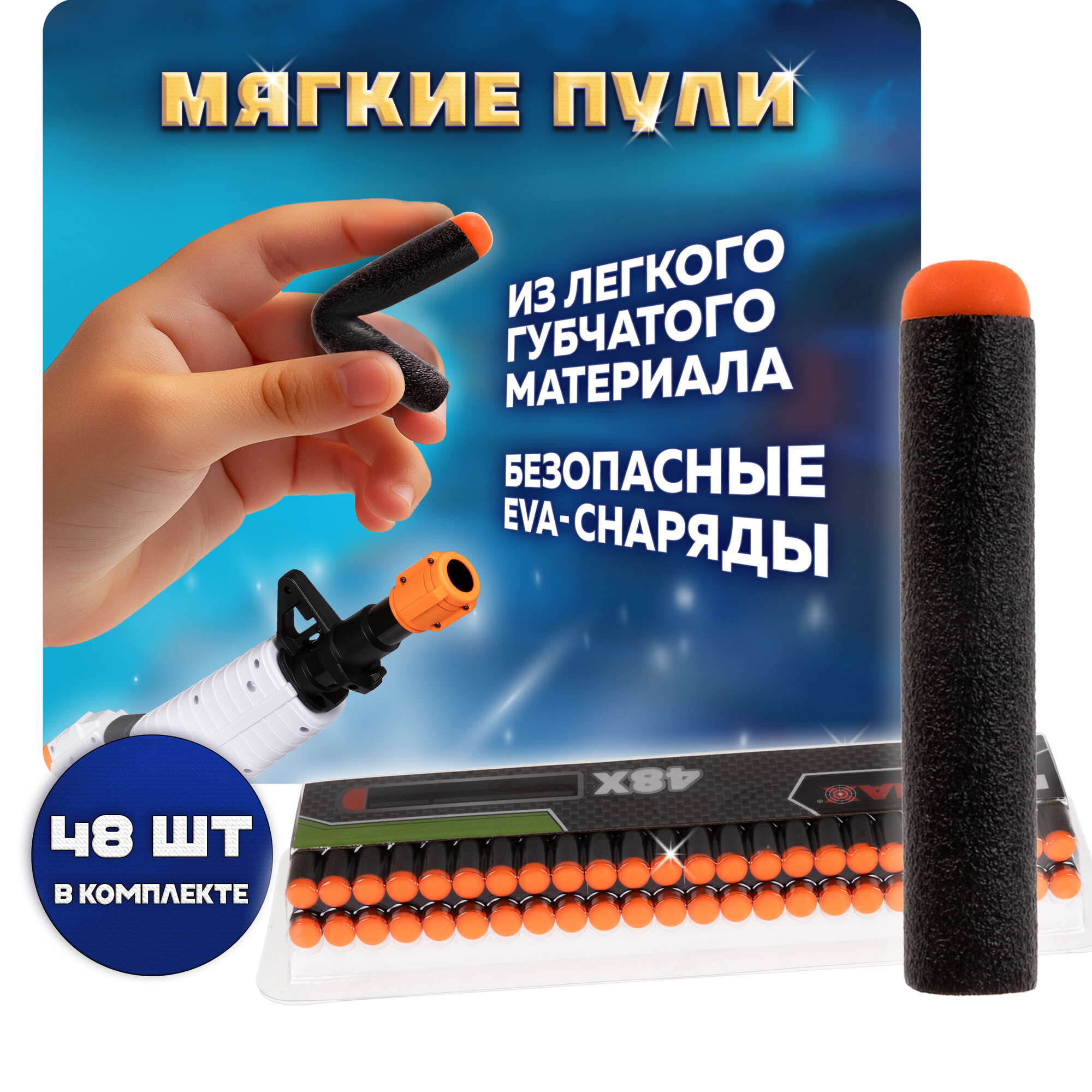 Фанмакс Патроны для бластера Funmax 1TOY игрушечные мягкие пули, набор 24 EVA снаряда