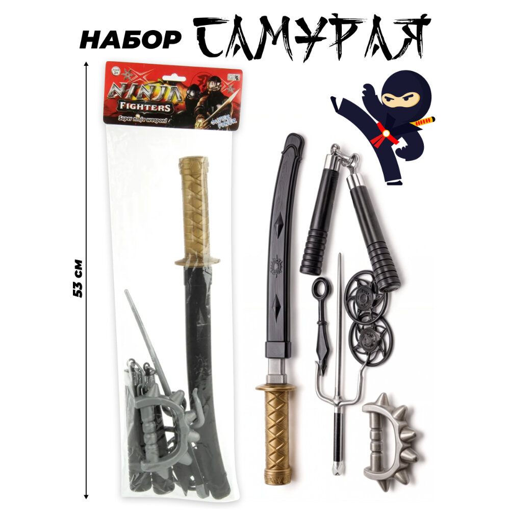 Отзывы на Набор игрушечного оружия Ниндзя, нунчаки, меч катана, кунай, сай, звездочки