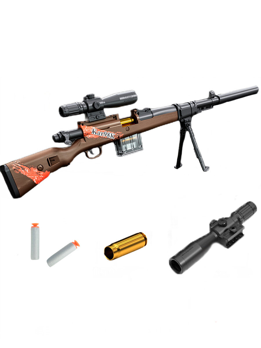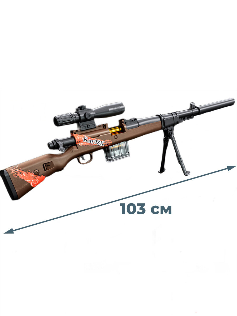 Отзывы на Игрушечная снайперская винтовка 98k с прицелом для стрельбы 10 патронов 103 см