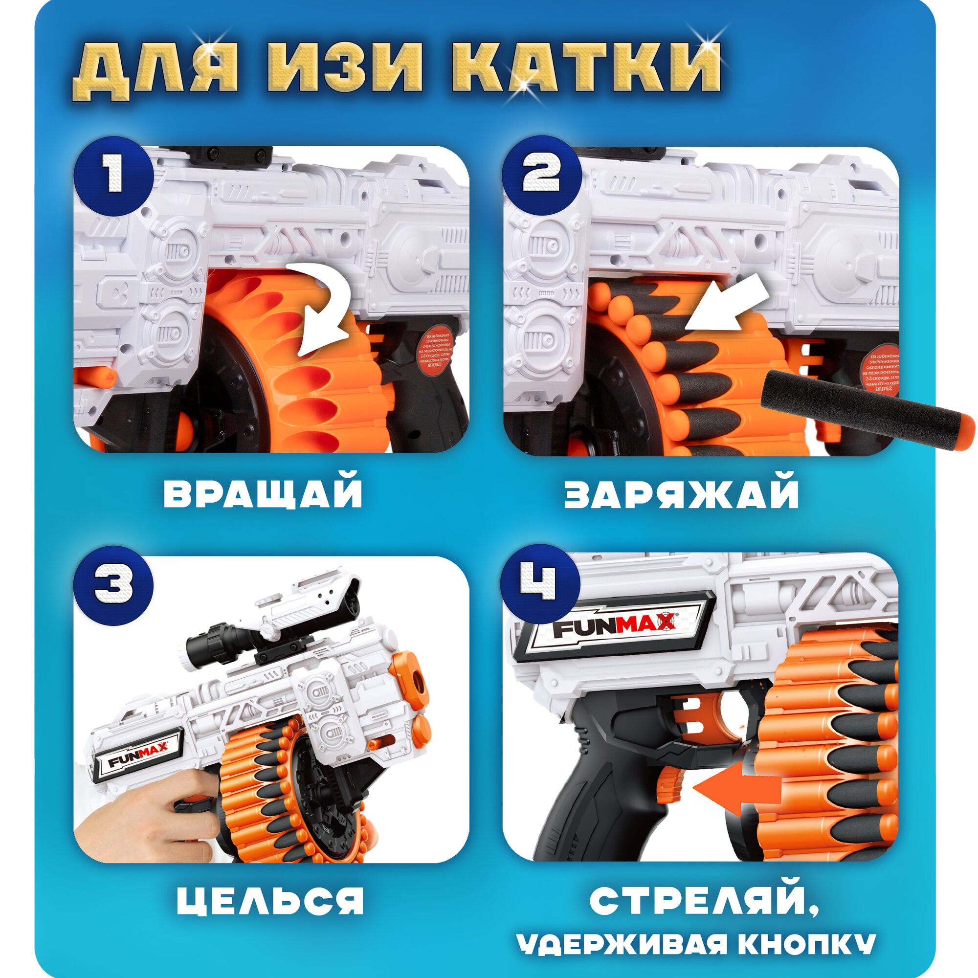 1toy Funmax "A81" бластер электромеханический, обойма на 12 выстрелов, в комплекте 48 EVA снарядов