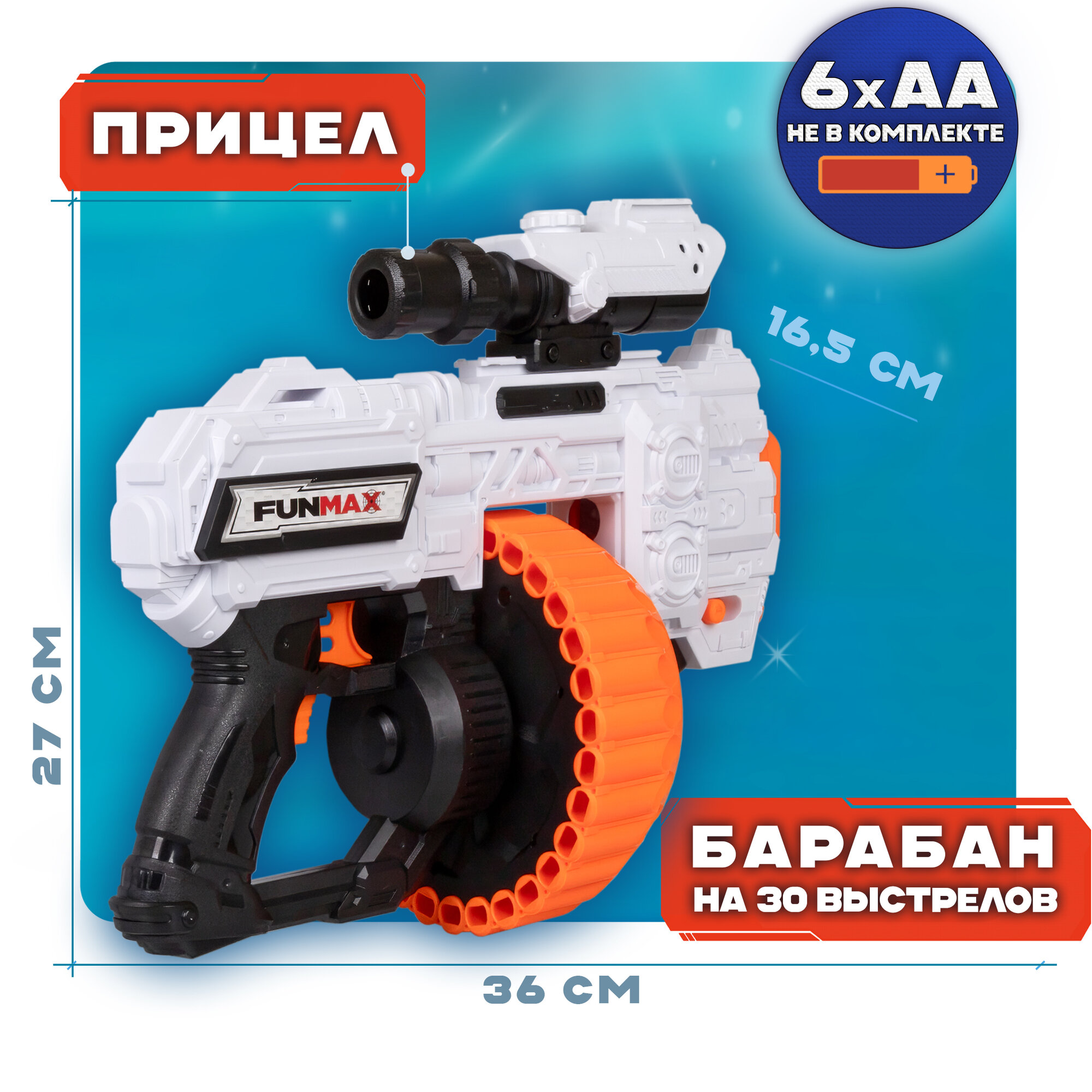 1TOY Funmax "A73" бластер электрический, барабан на 30 выстрелов, в комплекте 48 EVA снарядов информация: