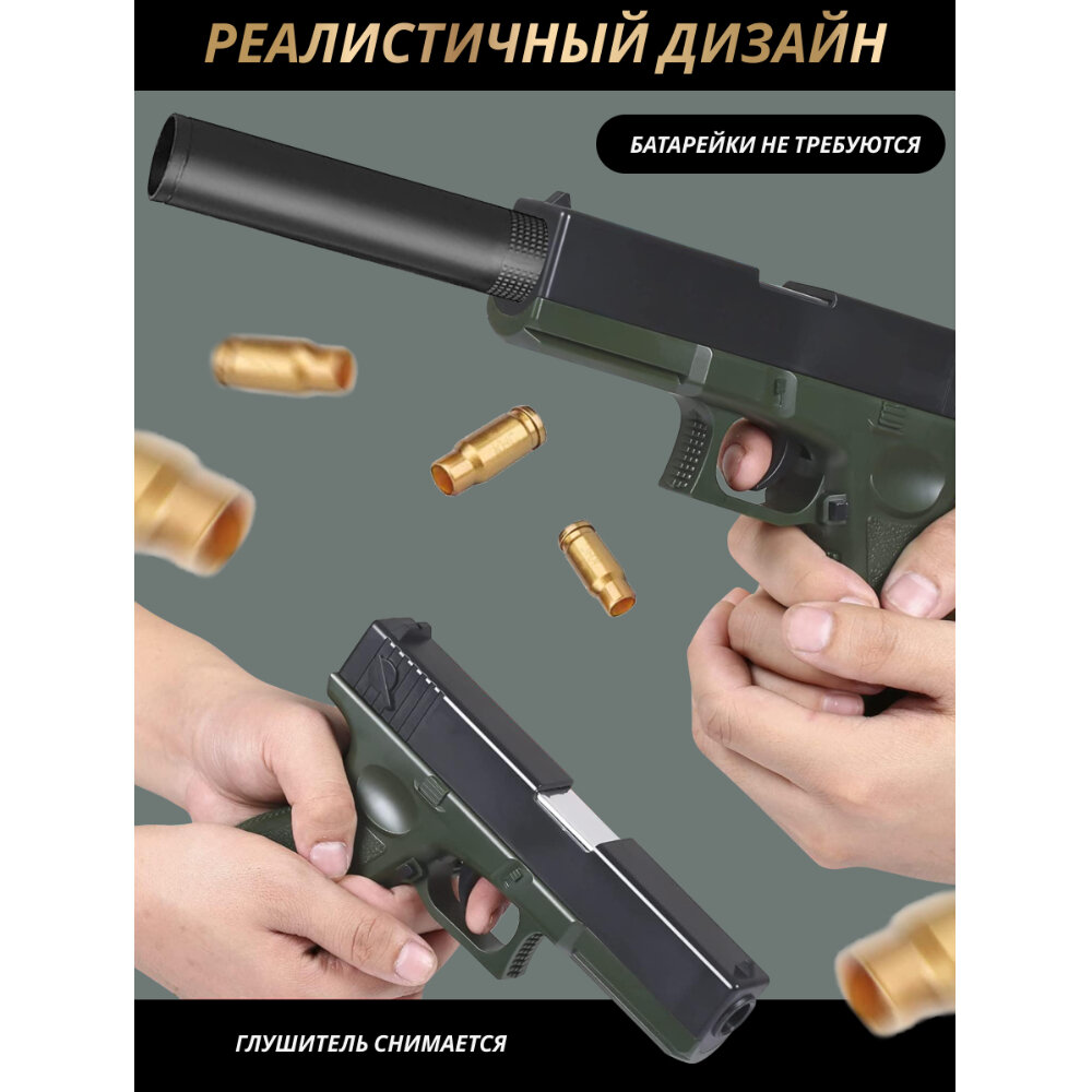 Игрушечное оружие детский пистолет Глок с мягкими пулями и вылетающими гильзами для мальчиков, съемный глушитель информация: