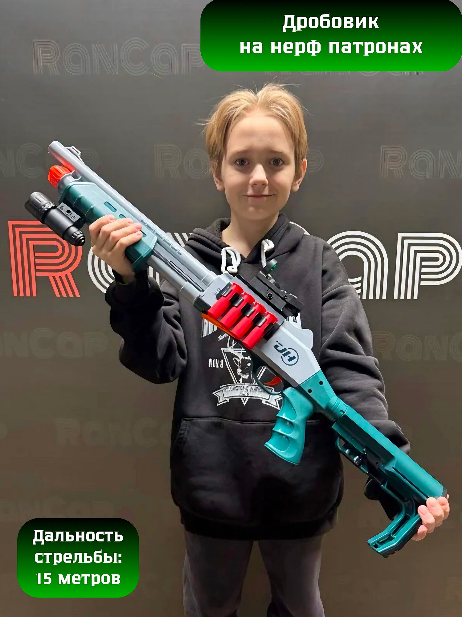 Дробовик RanCap с прицелом мягкие пули и гильзы зеленое 75 см + чехол информация: