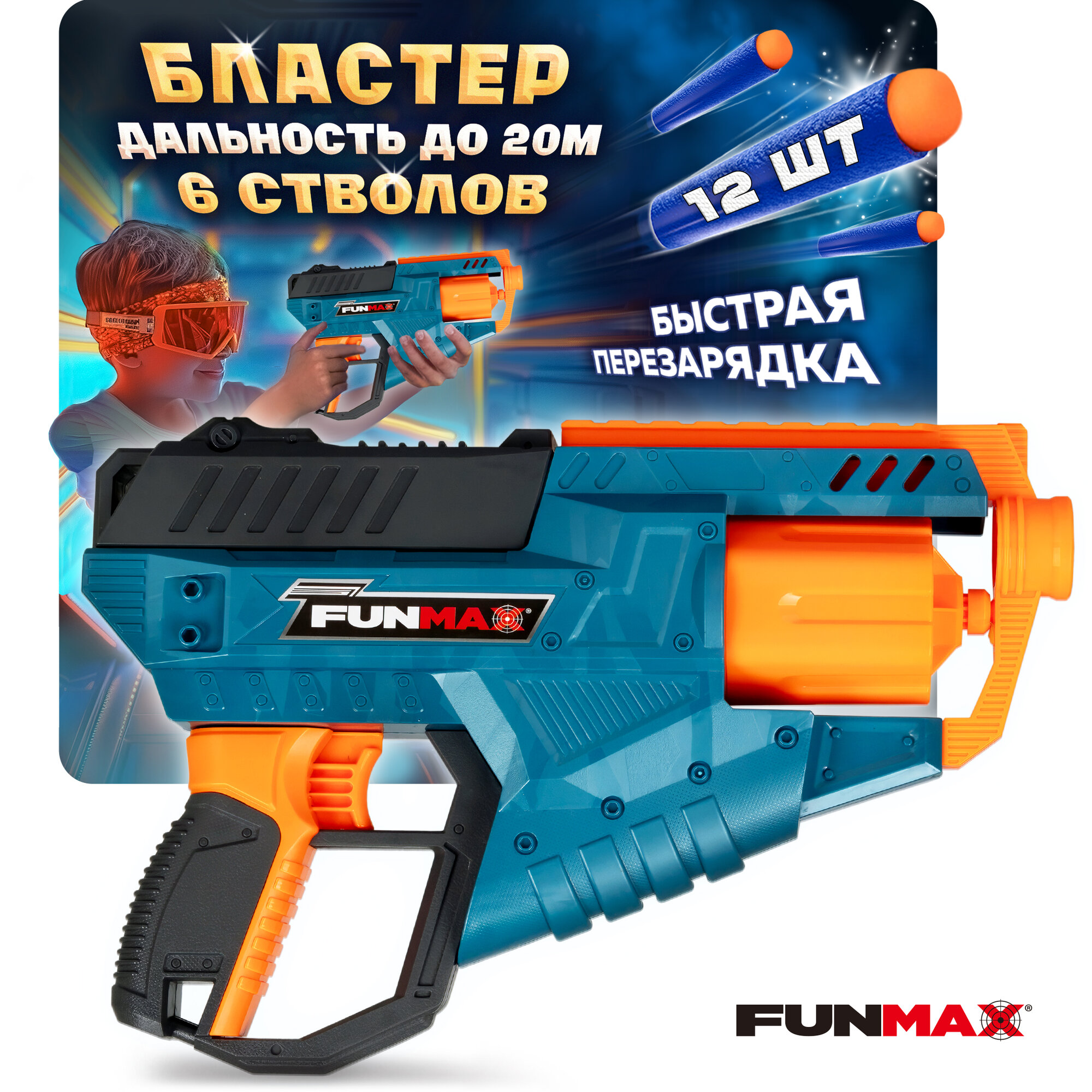 1toy Funmax "A81" бластер электромеханический, обойма на 12 выстрелов, в комплекте 48 EVA снарядов