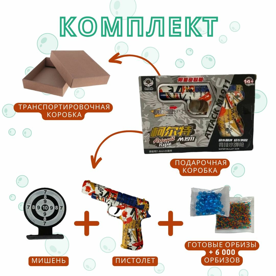 Игрушечное оружие пистолет с орбизами Colt m1911. Пистолет с пульками. информация: