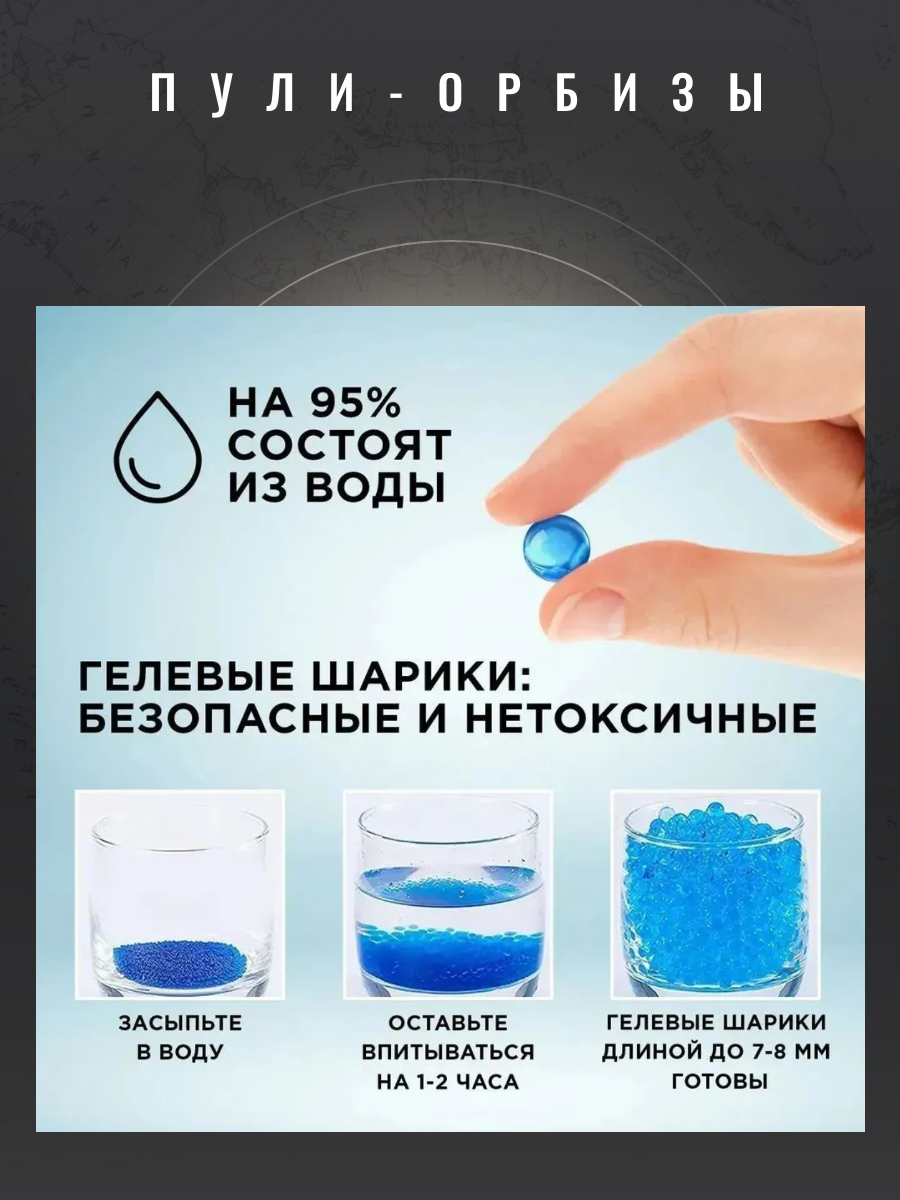 | Тип боеприпасов | гидрогелевые шарики / мягкие пули / патроны / пули |