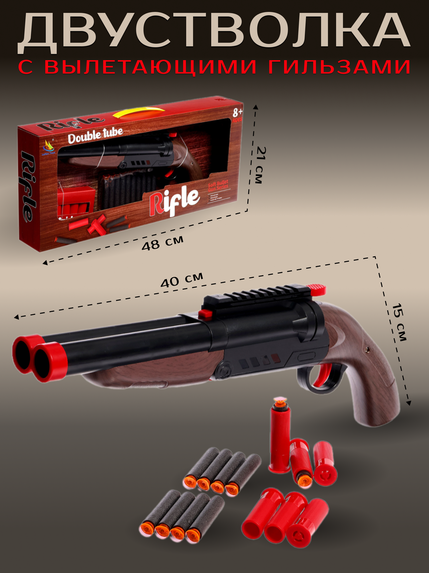 Игрушечное оружие детское ружье Двустволка 40 х 15 см с мягкими пулями и вылетающими гильзами для мальчиков информация: