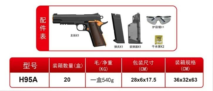 Игрушечный пистолет "M1911" HC TOYS, от аккумулятора, 28x17x6 см информация: