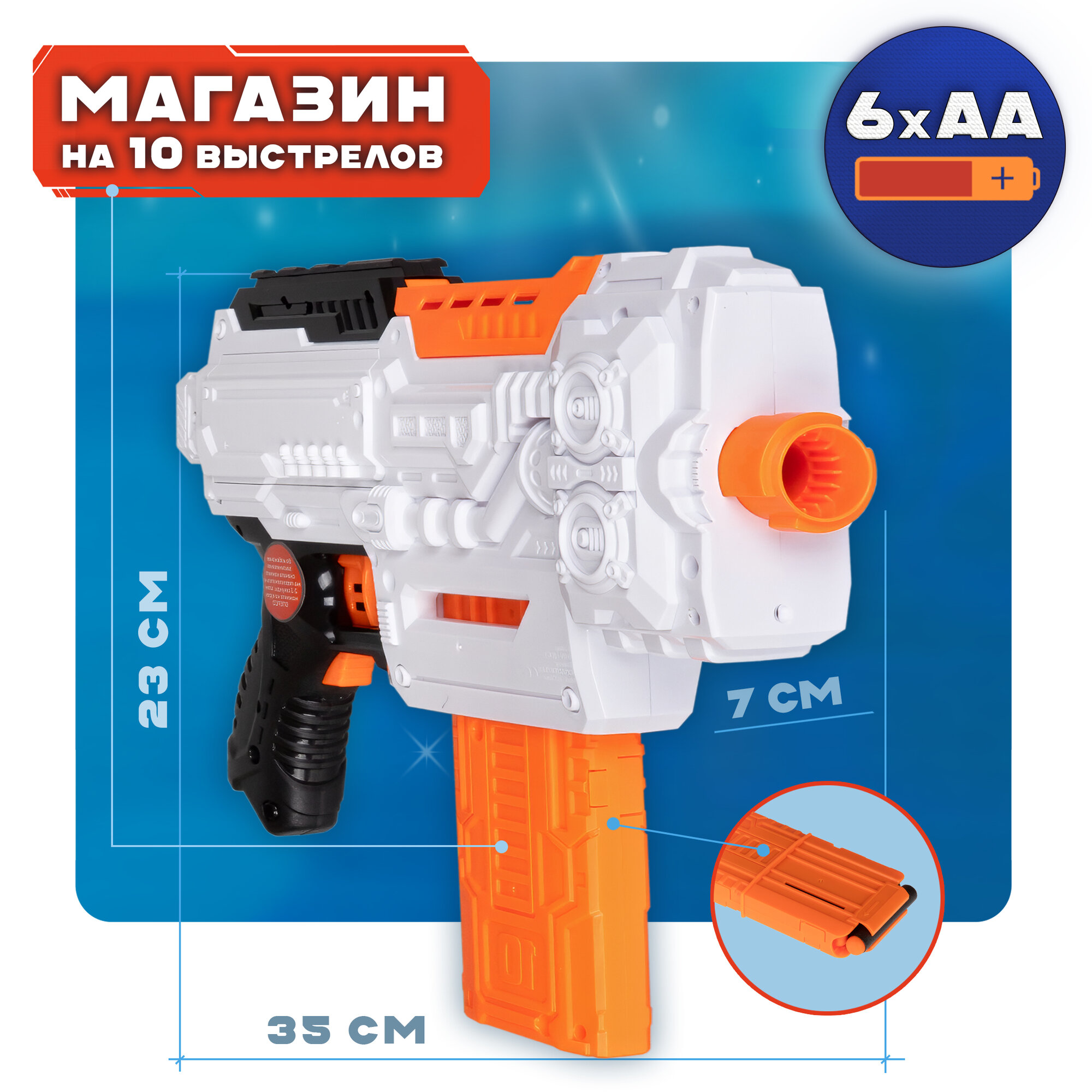 1toy Funmax "A81" бластер электромеханический, обойма на 12 выстрелов, в комплекте 48 EVA снарядов