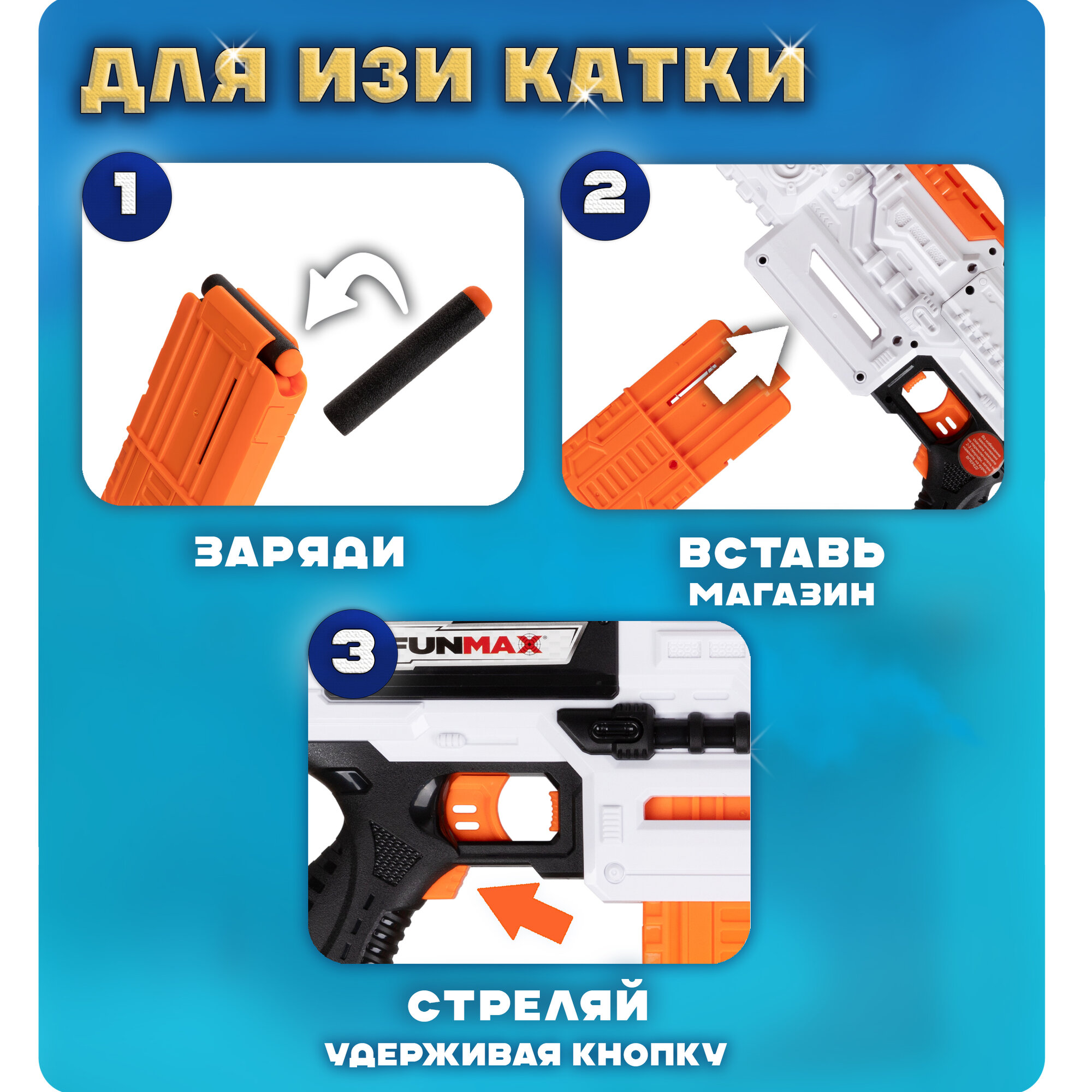 Отзывы на 1toy Funmax "A53" бластер электромеханический, обойма на 12 выстрелов, в комплекте 24 EVA снаряда.
