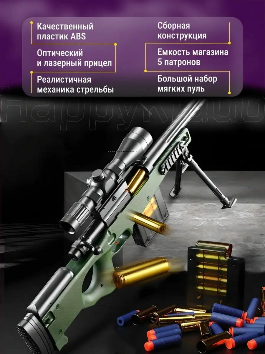 Снайперская Винтовка HC TOYS "AWM", с вылетающими гильзами, с оптическим прицелом информация: