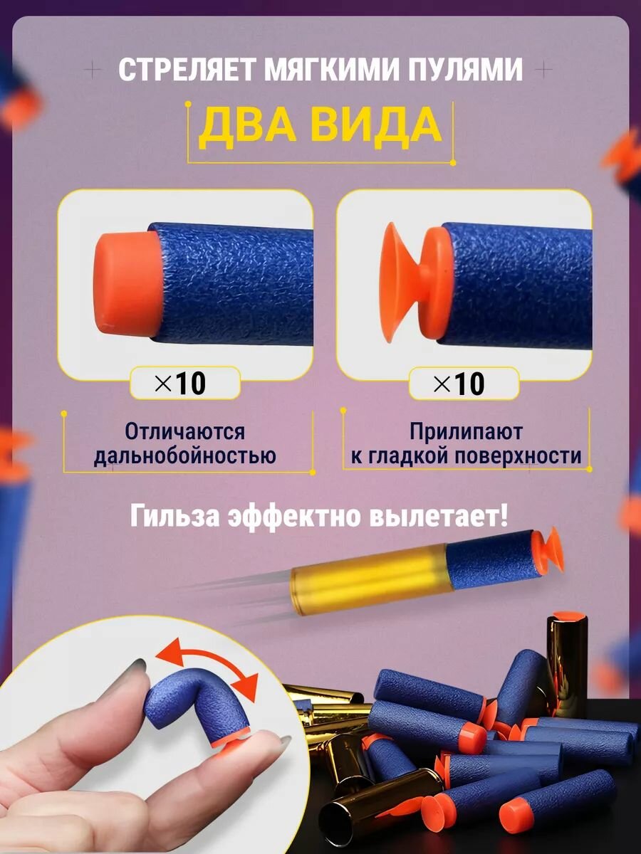Игрушечный дробовик Нерф с прицелом, выбросом гильз и комплектом мягких патронов / бластер с мягкими пулями