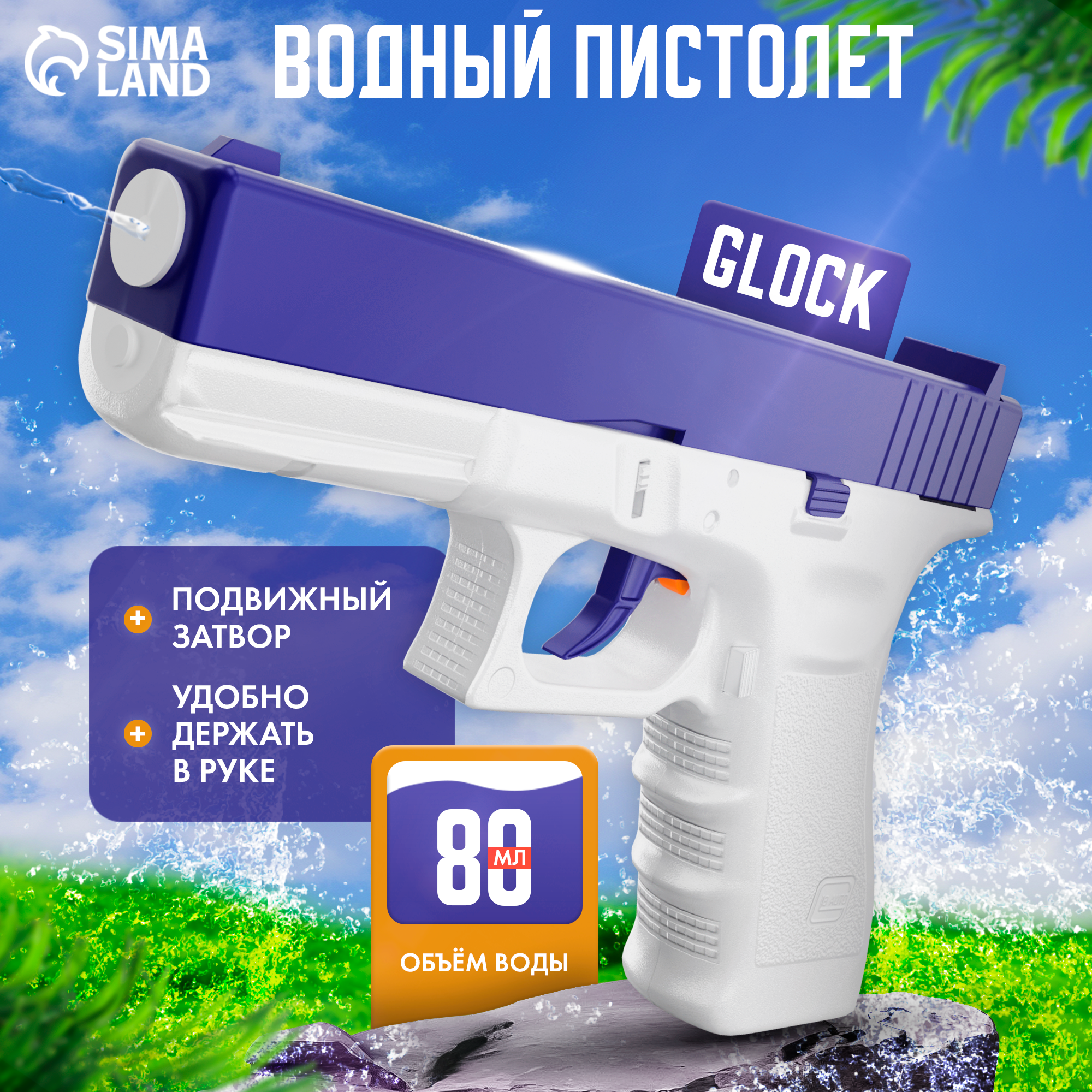 Водный пистолет "Глок", пластик, размер 15 см, объем 80 мл, Сима-ленд информация: