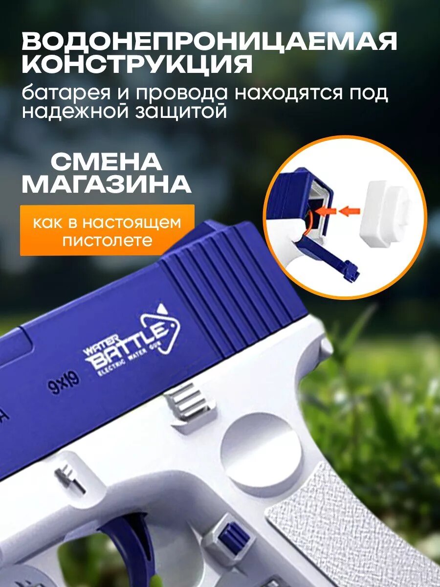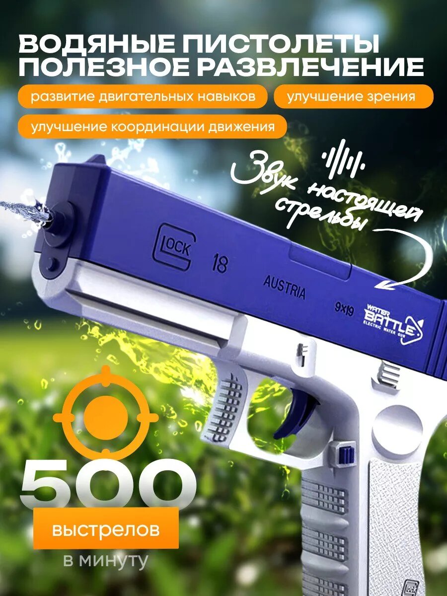 Водный пистолет WaterGun Glok-18, электрический, синий, дальность поражения до 10м 980 ₽
