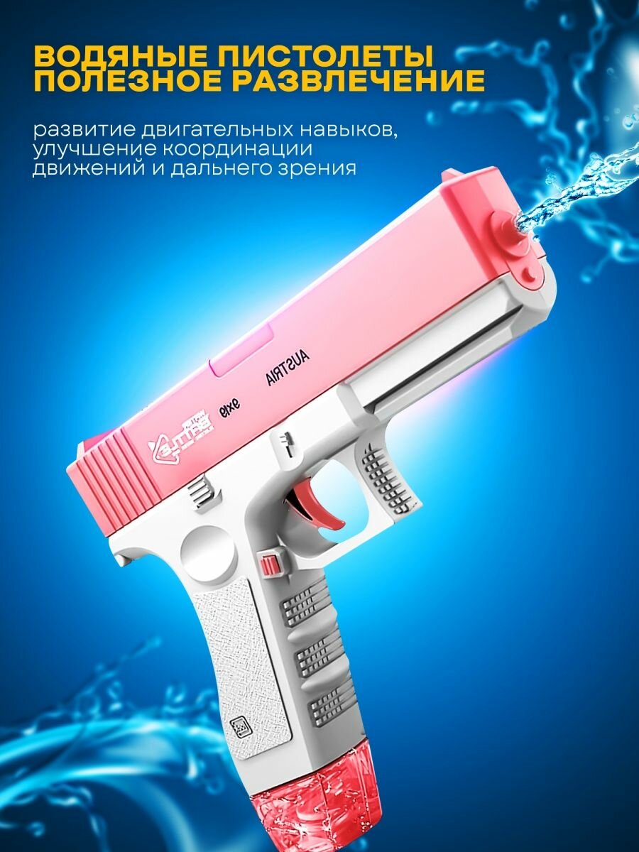 Отзывы на Водяной пистолет Glock, дальность поражения 10м, питание от аккумулятора, розовый