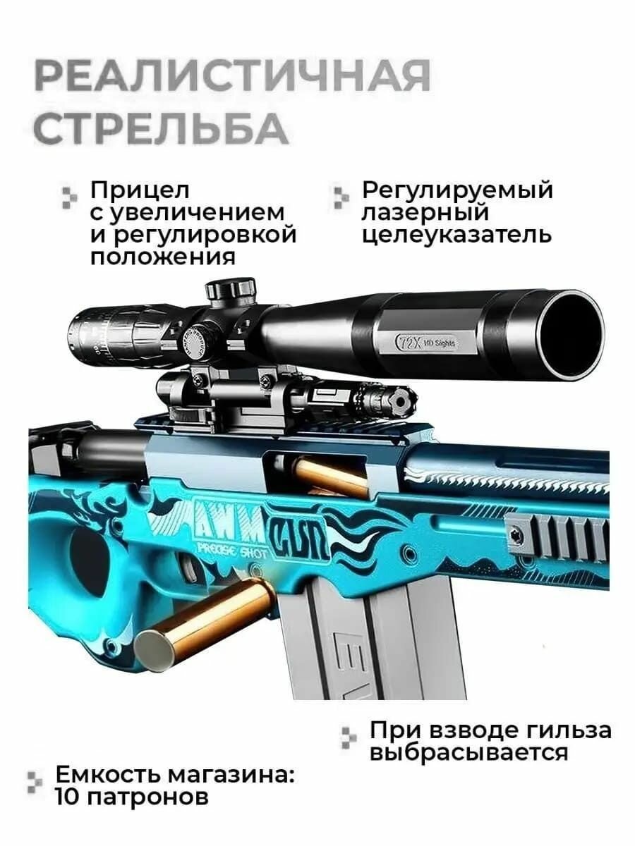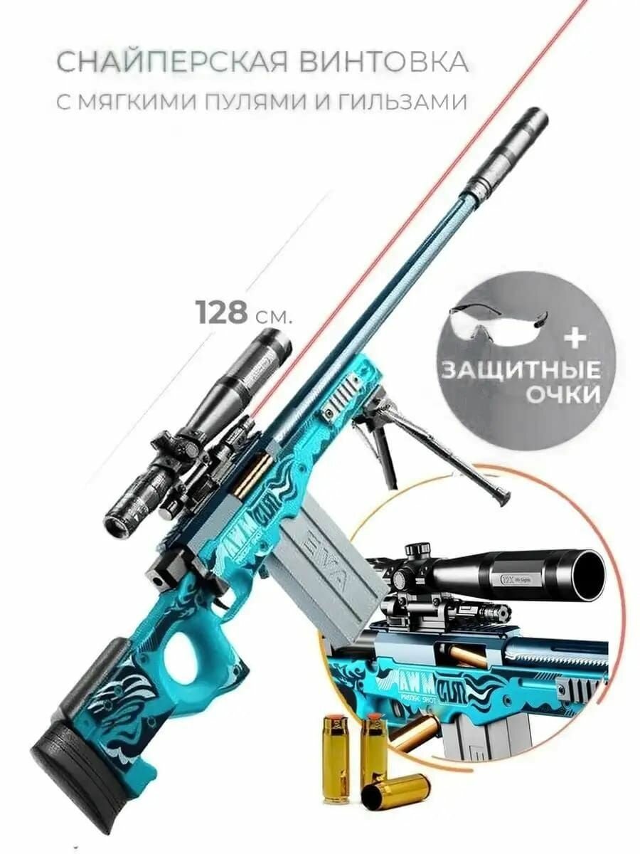 Игрушка для мальчика снайперская винтовка AWM пули, гильзы, оптика / 122 см / бирюзовая