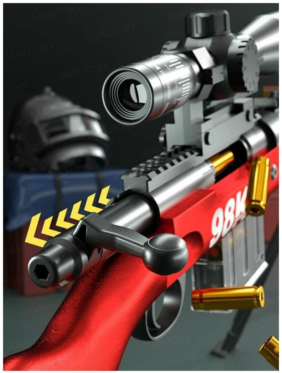 Отзывы на Игрушечная снайперская винтовка Kar98K (Красный) Нерф с прицелом, выбросом гильз и комплектом мягких патронов