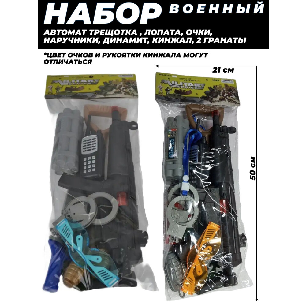 Детское игрушечное оружие набор военного полицейского для мальчика: автомат трещотка, лопата, наручники, бомба, рация, 2 гранаты информация: