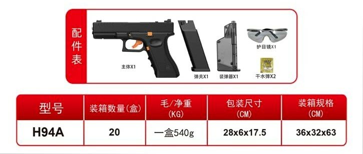 | Комплектация | Пистолет; Обойма-магазин; Очки |