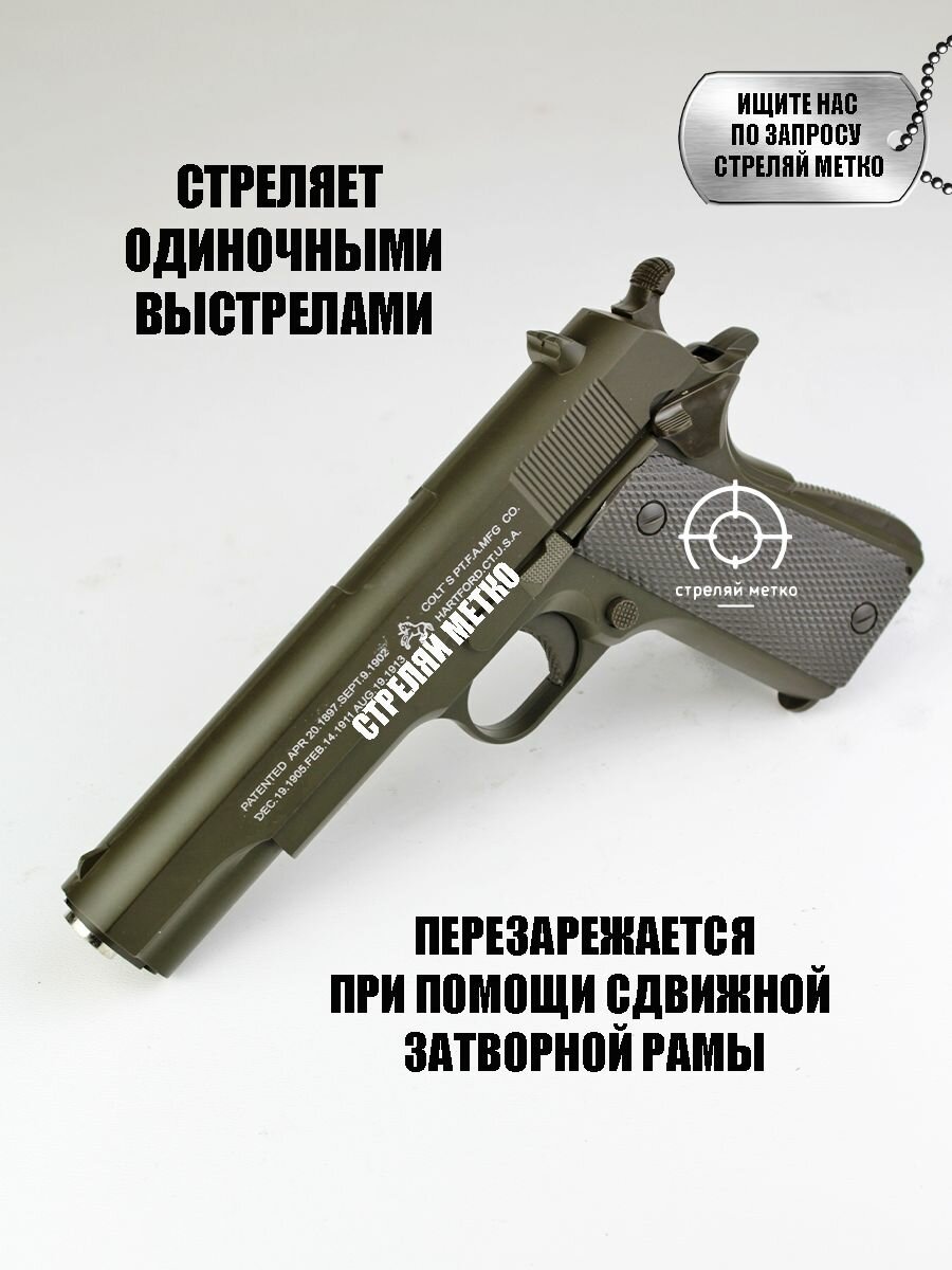 Спринговый детский пистолет с пульками железный Colt M1911 игрушечный металлический 1 800 ₽