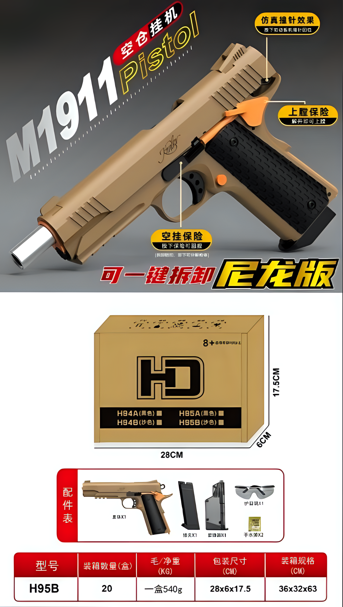 Отзывы на Игрушечный пистолет HC Toys M1911, EVA/пластик, обучающий, реалистичный дизайн, для игр