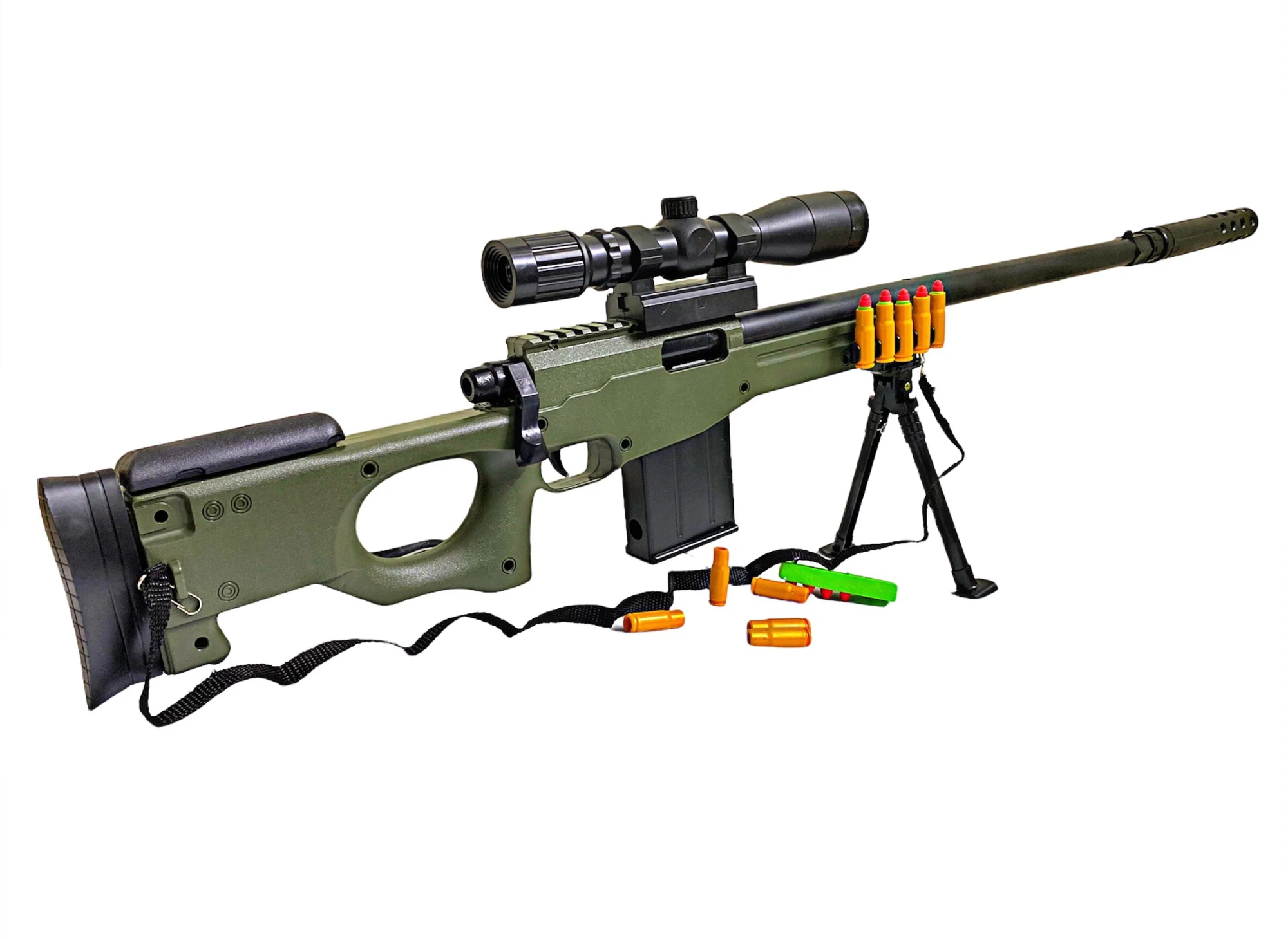 Отзывы на Игрушечная снайперская винтовка c оптическим прицелом AWM L49 110 см (два вида пулек, гильзы, очки)
