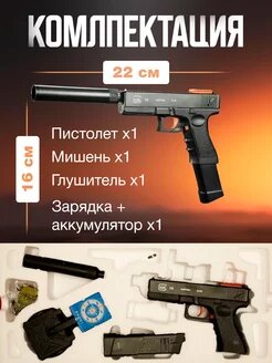10 цен на Пистолет орбизный P18C глок с глушителем. Пистолет мишень