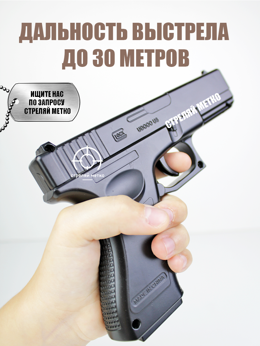 10 цен на Спринговый детский пистолет с пульками железный Glock - 18 игрушечный металлический