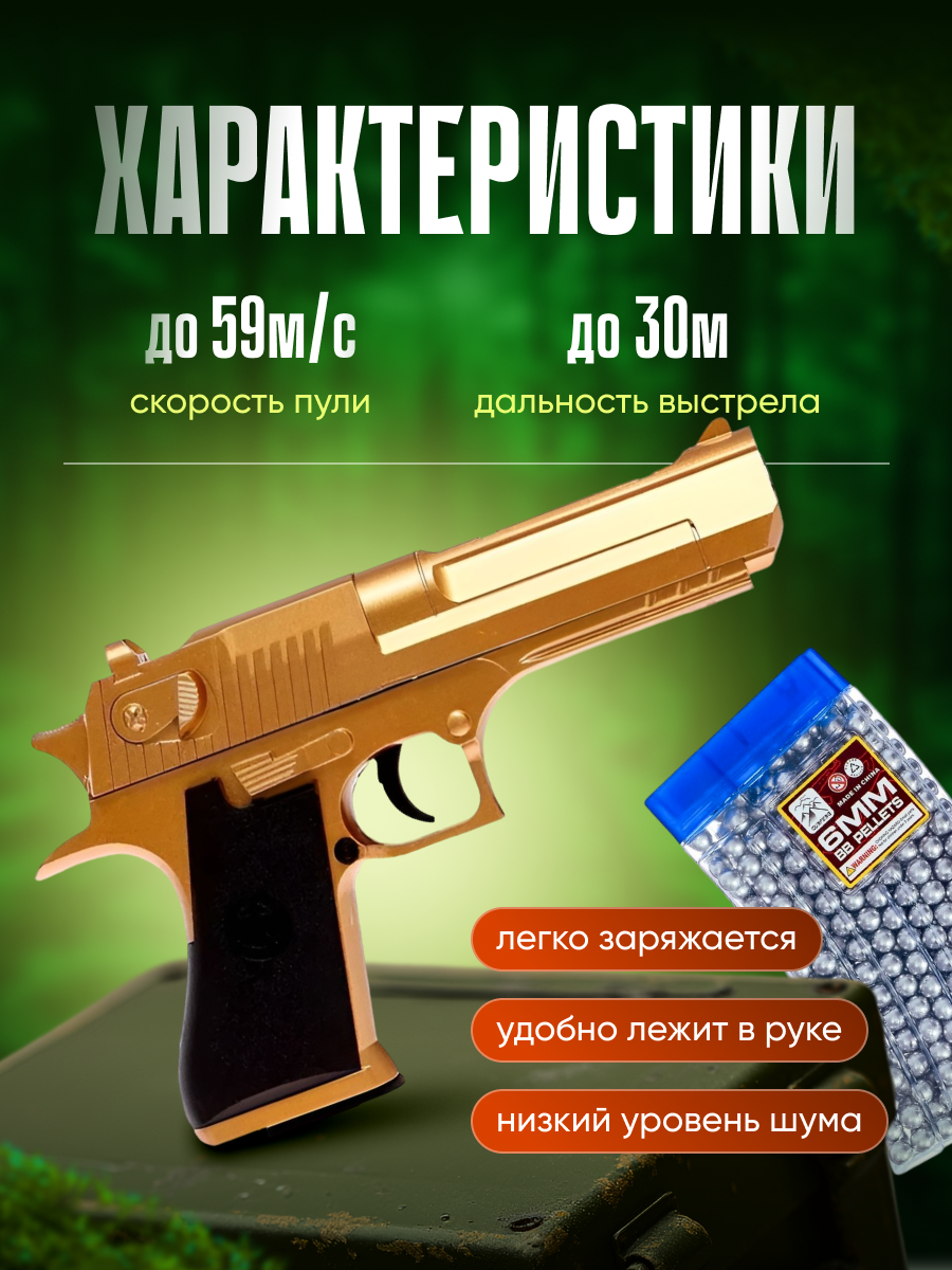 Отзывы на Игрушечный пистолет Золотой Дигл, Desert Eagle, металлический, k-111b