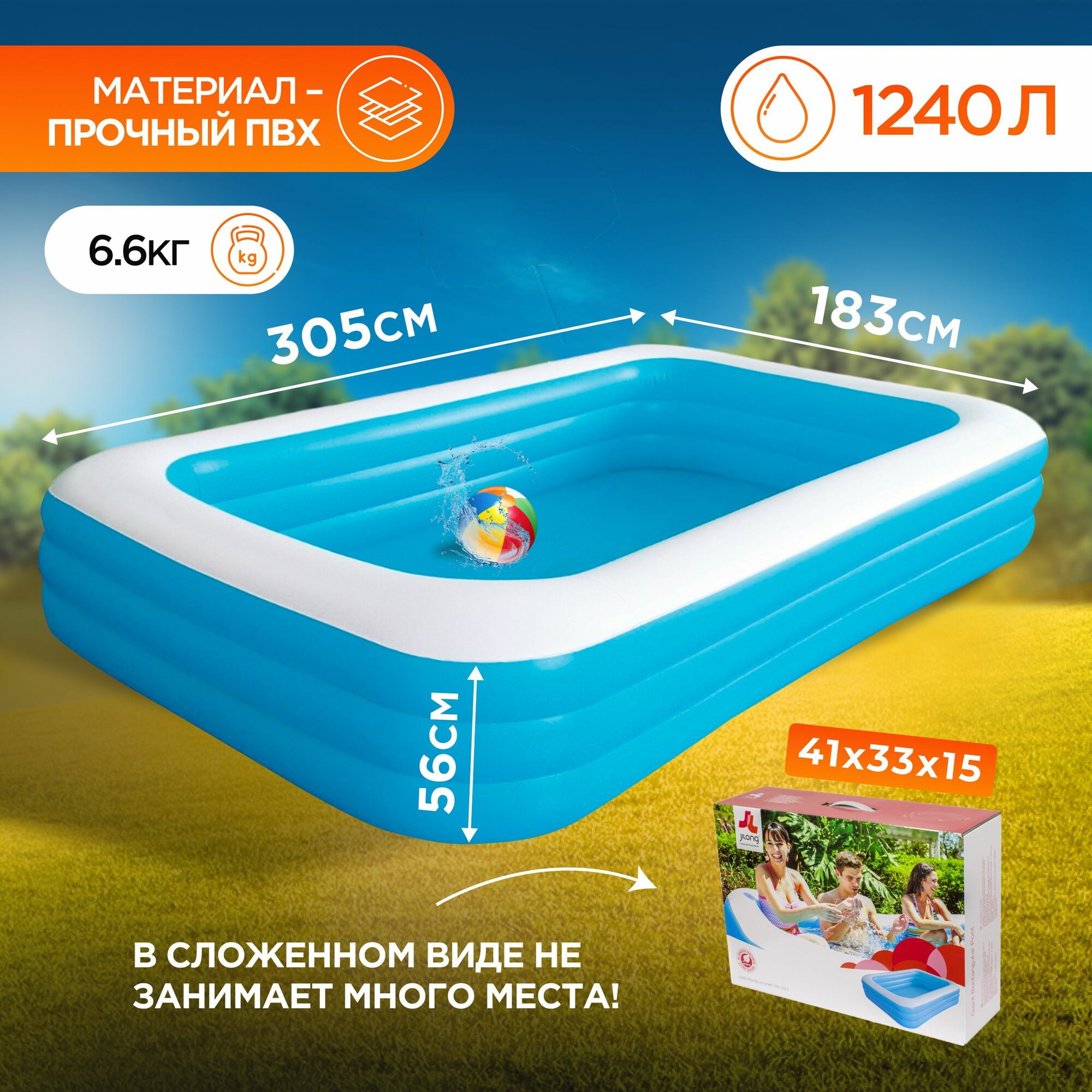 Отзывы на Бассейн надувной, семейный JILONG "GIANT",305х183х56см, возраст 6+, цвет: голубой