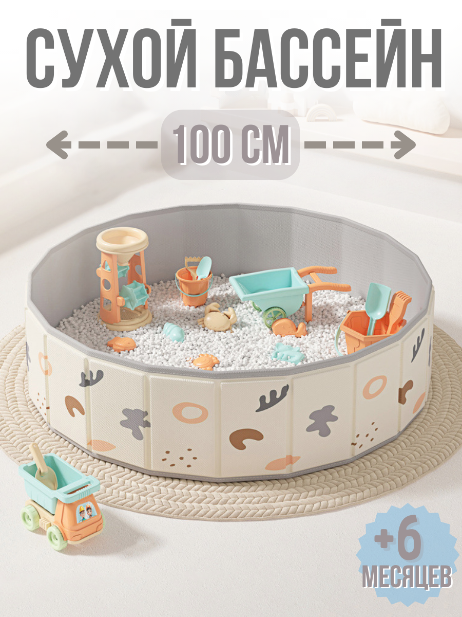 10 цен на Сухой бассейн, без шариков, складной, диаметр 100см, цвет бежевый
