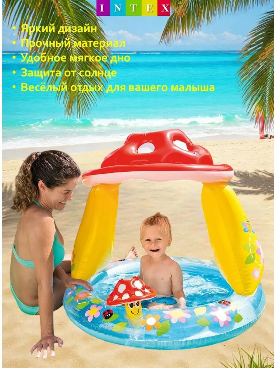 Отзывы на Intex Бассейн детский надувной Грибок с навесом и надувным дном 102х89см 45л, 1-3-х лет 57114NP