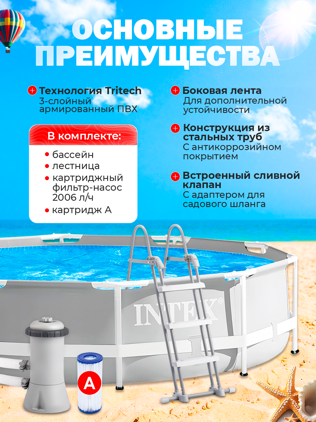 0 отзывов, средняя оценка 0. Чтобы купить «Бассейн каркасный Intex 26716 Prism Frame 366х99см с фильтр-насосом и лестницей» по лучшей цене мы сканируем авито, алиэкспресс, маркет, озон, савеловский, плеер, горбушку, беру, официальные сайты и находим минимальную. Администрация не несет ответсвенность актуальность цен на Бассейн каркасный Intex 26716 Prism Frame 366х99см с фильтр-насосом и лестницей, более подробно узнавайте на сайте магазина.