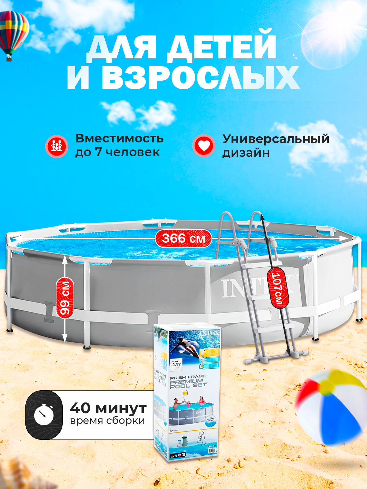 Отзывы на Бассейн каркасный Intex 26716 Prism Frame 366х99см с фильтр-насосом и лестницей