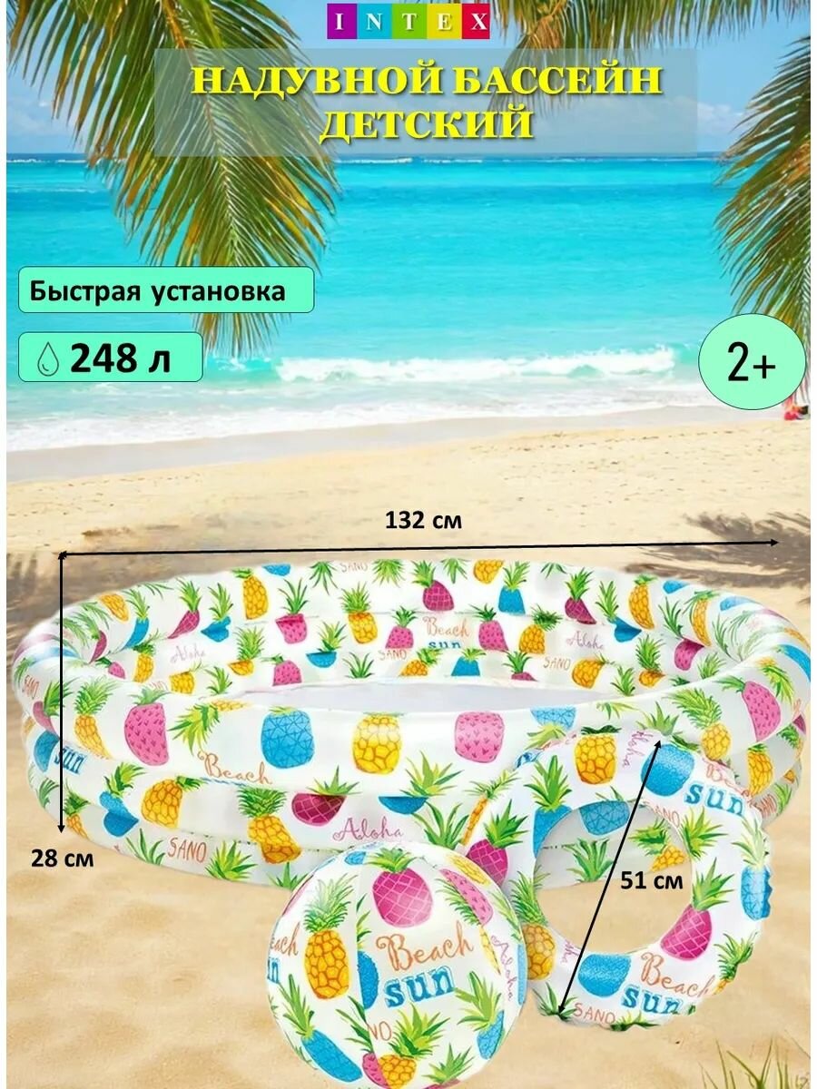 Отзывы на Intex Бассейн детский надувной Аквариум Ананас с мячом и кругом 132х28см 248л, от 2-х лет 59469NP