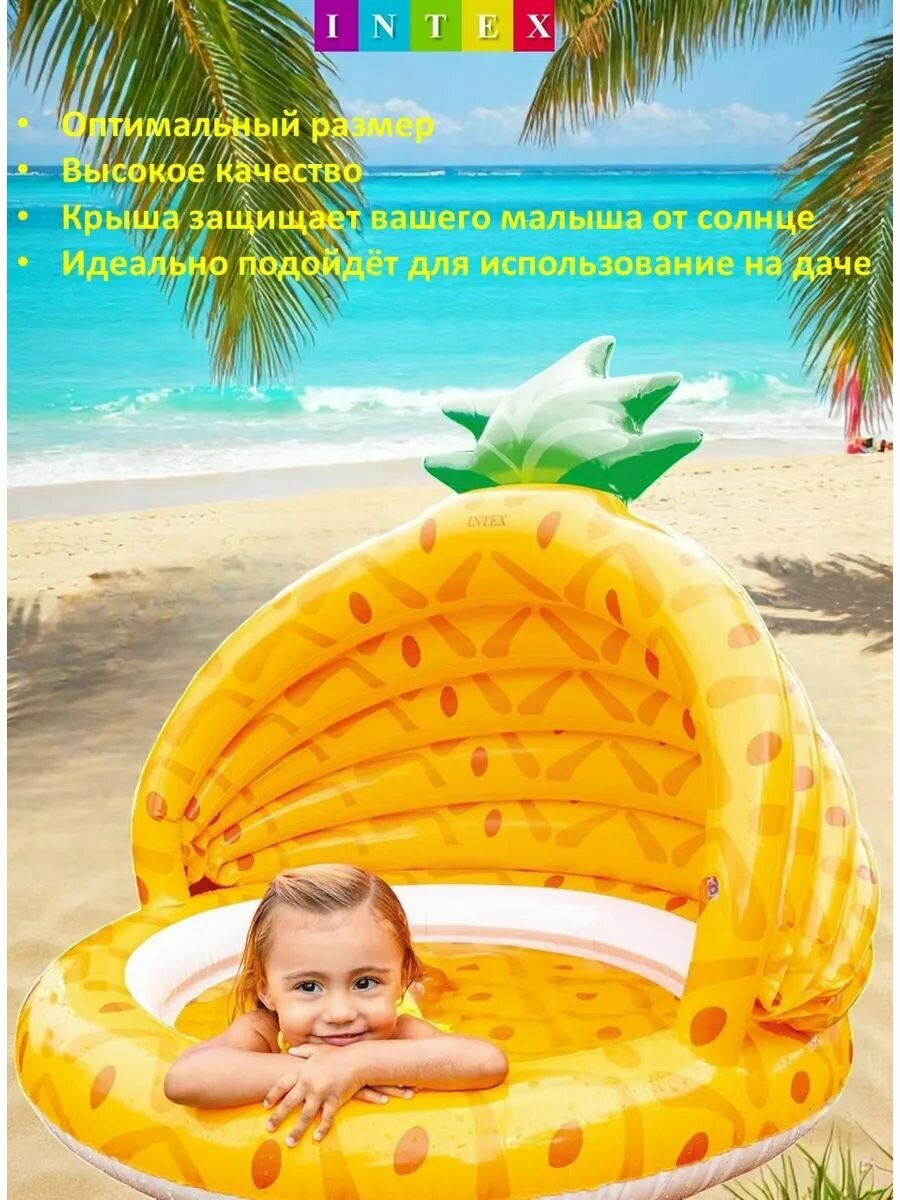10 цен на Intex Бассейн детский надувной Ананас с навесом 102х94см 45л, 1-3-х лет 58414NP