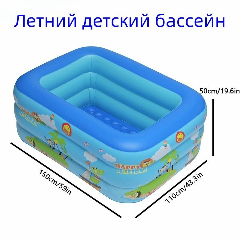 Бассейн, надувной, прямоугольный, детский, ПВХ, для дачи, 1,5-2,1 м 4 478 ₽