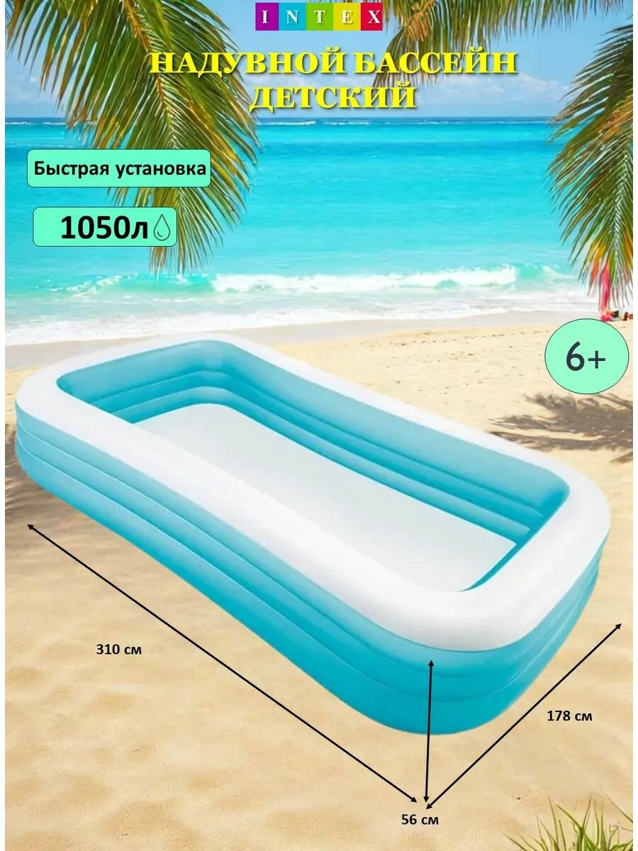 Отзывы на Intex Бассейн детский надувной Семейный голубой 305х183х56см 1050л, от 6-ти лет 58484NP