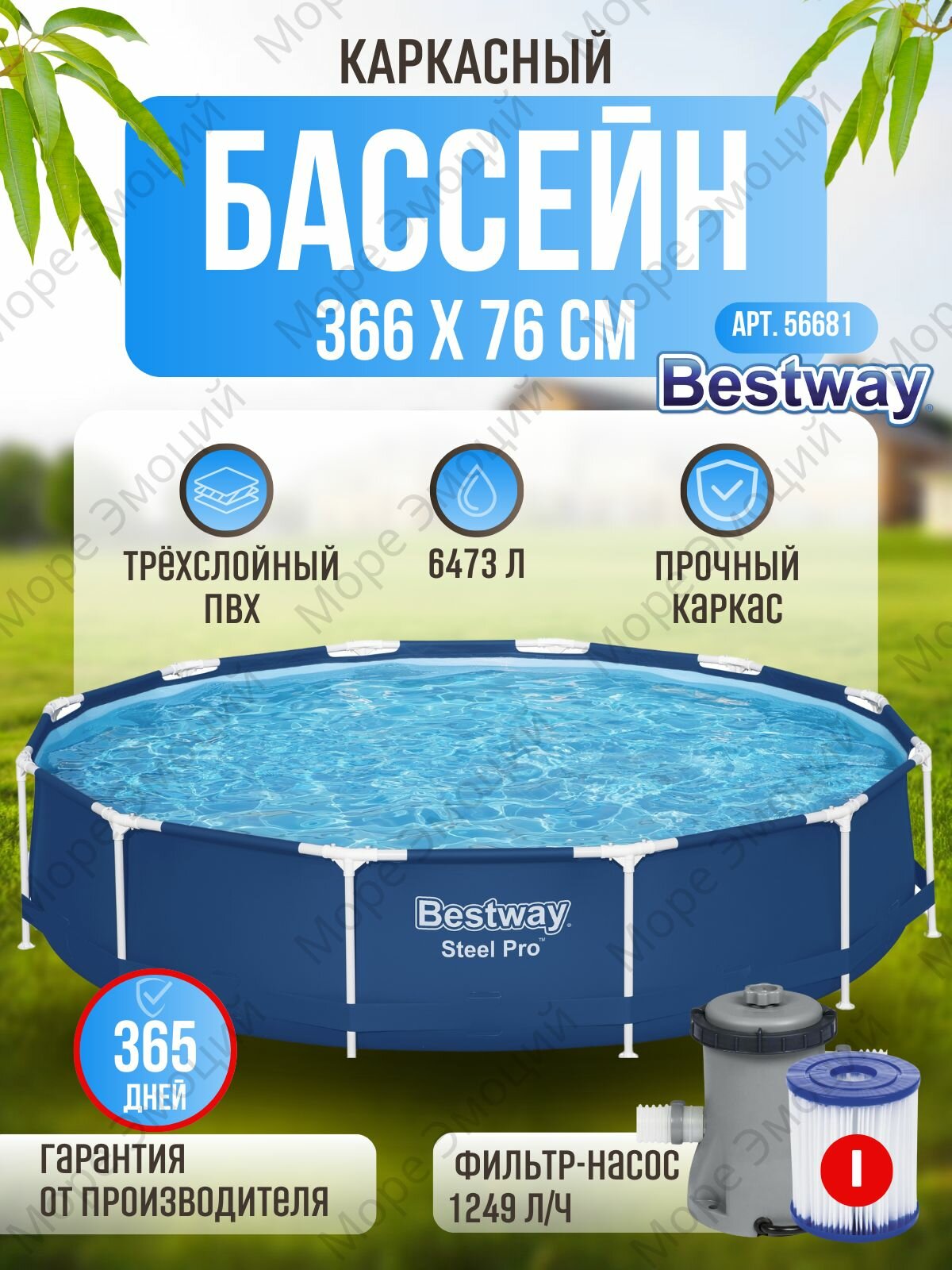 Бассейн каркасный Bestway Steel Pro, 366 х 76 см, с фильтр-насосом, 56681 информация: