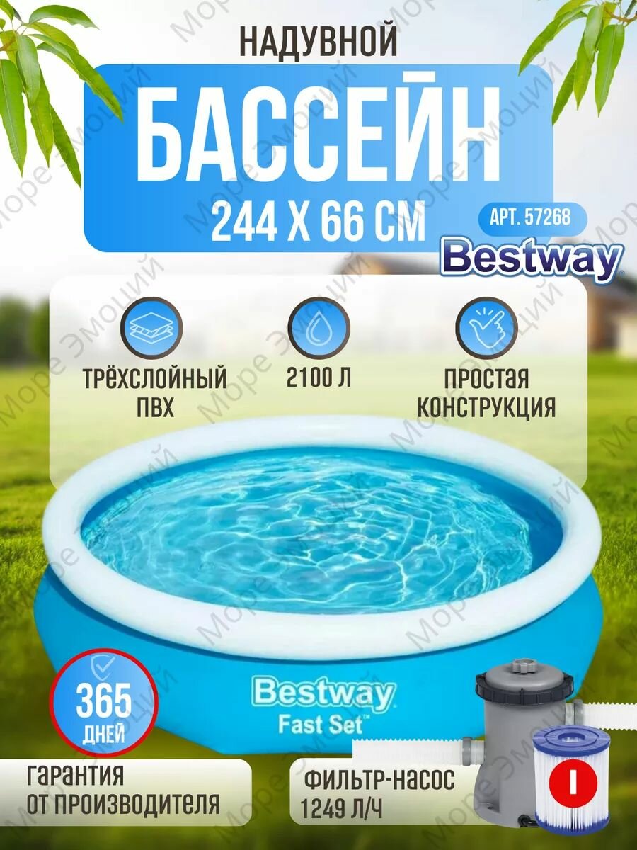 Надувной Бассейн Bestway "Fast Set Pools", с фильтром, голубой, 244x66 см информация: