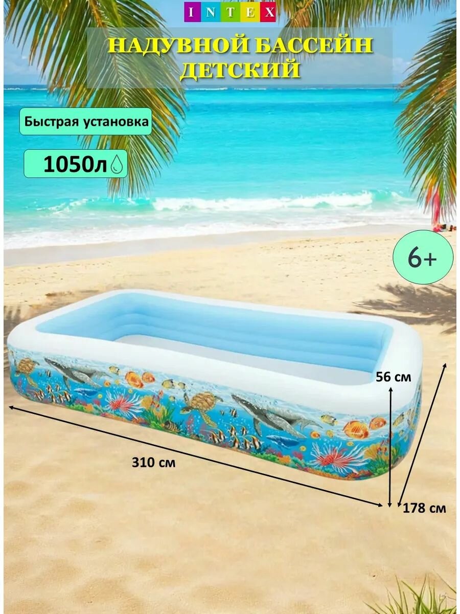 Отзывы на Intex Бассейн детский надувной Тропический риф 305х183х56см 1050л, от 6-и лет 58485NP