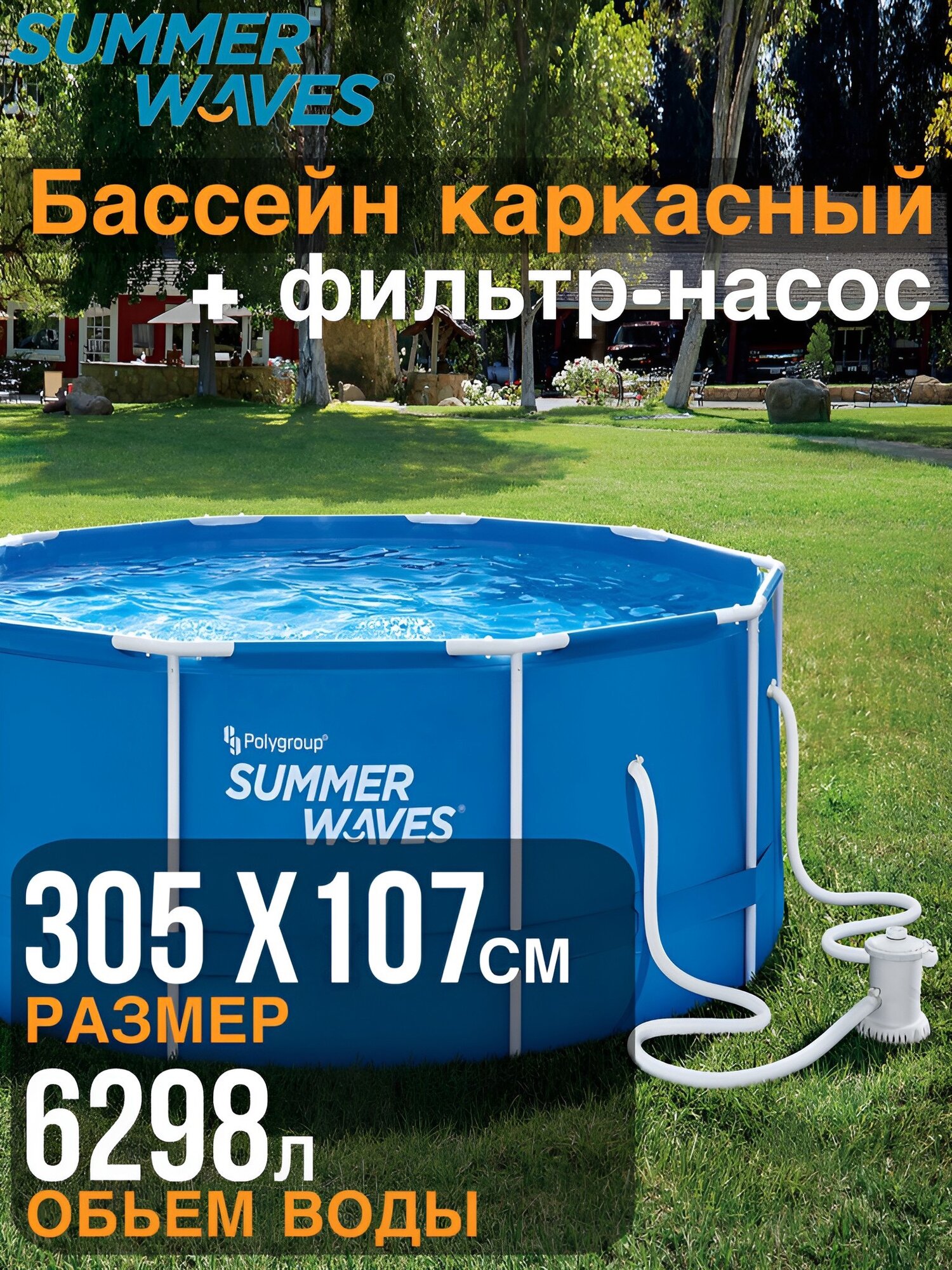 10 цен на Бассейн каркасный, сборный Summer Waves P20-1042-A, круглый 305 х 107 см.(в комплекте фильтр-насос)